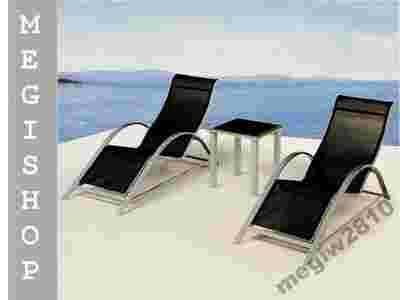 Zestaw składa się z dwóch praktycznych leżaków oraz stolika, na których można miło spędzić czas na tarasie, w ogrodzie lub na plaży. Leżaki wykonane są z aluminium oraz mocnego materiału-siatki tekstylnej (polietylen), wodoodporniej i zapewniającej cyrkulacje powietrza.