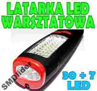 Warsztatowa lampa została wyposażona w 37 diod LED: 7 LED przód oraz 30 LED rząd z przodu, które można włączać razem lub na przemian.