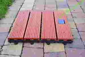 Płyty można ze sobą łączyć na zainstalowane przyczepy. Budując w ten sposób podłogę na tarasie, patio przy basenie czy spa.