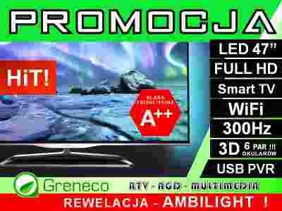 Dwustronny system Ambilight zapewniający większą intensywność wrażeń podczas oglądania. Technologia optycznie poszerza ekran i pozwala przenieść się w głąb akcji.