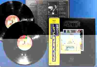 LP gatefold,embossed surface,with 8-page booklet containing photos of the group with additional insert with lyrics in English and biographical notes in Japanese. OBI color Yellow/Dark Blue, showing the price of 3,800 yen.