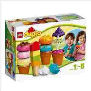 Stwórz najpyszniejsze kolorowe lody z klocków LEGO® DUPLO®! Ten niezwykły zestaw zawiera kolekcję kolorowych lodów na patyku, gałek i wafelków. Składanie porcji lodów z wybranych dużych i wygodnych klocków i serwowanie ich całej rodzinie będzie świetną zabawą dla Twojego dziecka! - Zestaw zawiera 3 wafelki do lodów, 6 kolorowych gałek, klocki przedstawiające sos jagodowy i bitą śmietanę oraz klasyczne klocki DUPLO. - Baw się wafelkami, klockami i dodatkami, starając się stworzyć największą i najpyszniejszą porcję lodów! - Nieograniczona, kreatywna zabawa dzięki zróżnicowanym elementom. - Zaokrąglone klocki są wygodne i przyjemne w dotyku. - Produkty LEGO® DUPLO® są bezpieczne i wygodne dla małych rączek. - Najwyższa porcja lodów ma ok. 18 cm wysokości, 6 cm szerokości i 6 cm głębokości.