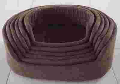 Legowisko dla psa wykonane z zamszopodobnego materiału w kolorze brązowym. Wymiary wewnętrzne: ok. 52x42x18cm.