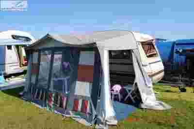 W komplecie NAMIOT PRZEDSIONEK, gruby renomowanej zachodniej firmy na długość przyczepy i szerszy nawet od niej.