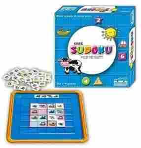 Opis produktu:Moje pierwsze Sudoku bazuje na łamigłówkach logicznych Sudoku, które podbiły cały świat. Gra opiera się na tych samych zasadach co łamigłówki Sudoku dla dorosłych i starszych dzieci. łamigłówki te posiadają jednak mniejszą ilość pól, a dołączone płytki są ilustrowane. Wyzwanie jakie stanowi zostało dostosowane do umiejętności młodszych dzieci.Zasady gry są niezwykle proste: należy umieścić płytki w pustych miejscach łamigłówki, tak aby dany obrazek bądź liczba pokazała się w każdym wierszu, kolumnie i kwadracie tylko jeden raz.Gra moje pierwsze sudoku została stworzona specjalnie dla dzieci będących na różnych etapach rozwoju. Zróżnicowane poziomy trudności łamigłówek są dostosowane dla graczy w wieku od 4 do 10 lat. Małe dzieci i początkujący gracze powinni zacząć od rozwiązywania łamigłówek na mniejszych planszach 4 X 4pola, podczas gdy plansze 6 X 6 pól stanowią wyzwanie dla bardziej zaawansowanych graczy.Dzięki dwustronnym płytkom dzieci mogą grać według kolorów, kształtów oraz liczby lub odwrócić płytki i grac w woparciu o obrazki wyzwanie pozostaje to samo!Współzawodnictwo Sudoku to swietna zabawa dla tych, którzy juz zapoznali się z zasadami gry i pragna sprawdzić swoje umiejętności z innymi graczami. Takie rozgrywki mogą odbywać się między 2,3 lub 4 rozgrywającymi.Gra przeznaczona:dla 14 graczy w wieku 410 latZawartość pudełka:dekoracyjna tablica do gry, 48 łamigłówek o różnych poziomach trudności, 36 dwustronnych płytek oraz nalepki, 48 kart z rozwiązaniami, klepsydra, 4 wskaźniki punktacji, instrukcja
