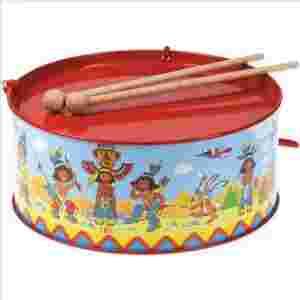 Bębenek metalowy Å›rednicy 20 cm i wysokoÅ›ci 9 cm. Bebenek z motywem Indian. W zestawie są dwie drewniane paÅ‚eczki. Przeznaczony dla dzieci w wieku od 3 lat.