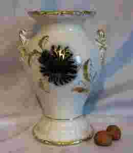 Pękata forma, dwa uchwyty, kobaltowy motyw florystyczny z