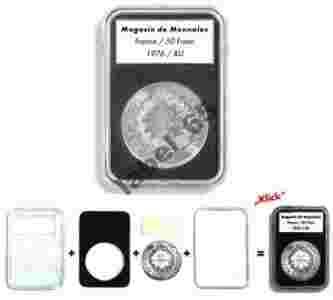 Uniwersalne kapsuły Everslab, wytworzone z plastiku o bardzo wysokiej odporności na zarysowania. Dzięki prostokątnemu kształtowi, jak i jednolitemu wymiarowi zewnętrznemu, istnieje możliwość pomieszczenia monet o różnych średnicach w jednym systemie, specjalnie wyprodukowanym pod te oto kapsuły. Wnętrze wypełnione jest czarną pianką, która zapobiega poruszaniu się monety. Produkt ten jest chemicznie obojętny. Dzięki załączonej etykiecie jak i specjalnie w pokrywie przeznaczonemu na ten cel miejscu, przechowywana moneta może dokładnie być opisana. Za pomocą prostego "kliknięcia" kapsle Everslab bezpiecznie i trwale są zamykane. Po ich zamknięciu nie ma możliwości ponownego otwarcia kapsla! - jeden zewnętrzny wymiar kapsuły 85 x 60 mm - możliwość umieszczenia monet w wymiarach od 14mm - 41mm - wysokiej klasy, idealnie dopasowana wkładka plus etykieta - optymalne i trwale zabezpieczenie - wysokiej jakości plastik, odporny za zarysowania - specjalny system, niepozwalający na ponowne otwarcie kapsuły Kapsuła Everslab jest idealnie dopasowana do kaset firmy Leuchtturm. Podana cena dotyczy jednej kapsuły Everslab !!! Po dokonaniu zakupu proszę o wybór rozmiaru.