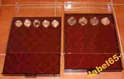 Kasety typu MB XL (szufladka dymna z wkładem w kolorzeciemnoczerwonym) przeznaczone są do kolekcjonowania monet w wysokich kapslach.