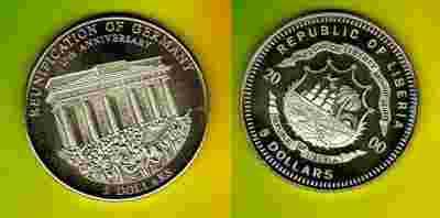 LIBERIA 5 Dollars 2000 r.GERMAN REUNIFICATION men.