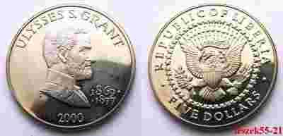 LIBERIA 5 DOLLARS 2000 S USA ULYSSES S. GRANT UNC