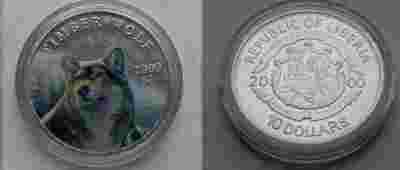 Liberia Wilk 10$ American Wolf 2000 r Srebro 0.999