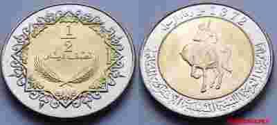 LIBIA 1/2 DINAR 2004 KRAUSE 15$ BIMETAL MENNICZA