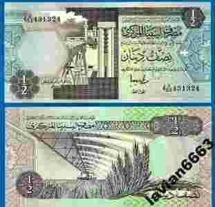 LIBIA 1/2 DINARA 1991 r. P-58 UNC