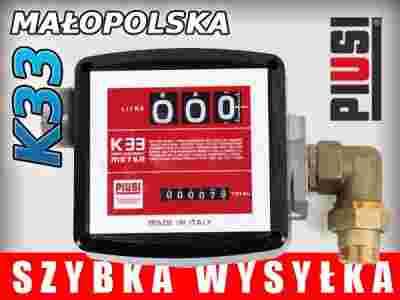 L3 - Licznik Mechaniczny K33 firmy PIUSI o dokładności ±1% z możliwością kalibracji. Przepływ do 120l, metalowa obudowa