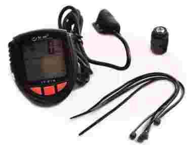 Ekran licznika pokazuje czas jazdy, prędkość, odległość podróży, zużycie kalorii,aktualną prędkość.