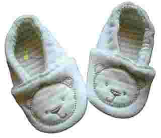 Buciki kremowe z naszytym misiem podeszwa antypoślizgowa buciki wokół kostki na gumeczce