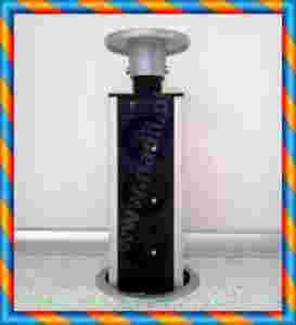 Schowany panel doskonale licuje z powierzchnią blatu. Pokrywa górna (jedyny widoczny element po ukryciu kolumny w meblu) jest dostępna w kolorze srebrno-czarnym (wieczko srebrne, obwódka gniazda widoczna po schowaniu gniazda w blat- kolor czarny).