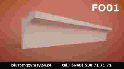 Przedmiotem aukcji jest 1mb (metr bieżący)gzymsu przysufitowego oświetleniowego (listwa oświetleniowa) do wnętrza o przekroju bocznym: 80mm x 40mm oraz kształcie FO01.Jest to listwa wykonana z gładkiego polistyrenu XPS przyklejana do ściany gotowa do montażu taśmy led oświetlającej sufit.