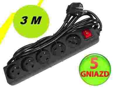 LISTWA PRZEDŁUŻACZ SIECIOWY Z 5 GNIAZDAMI PRZEWÓD 3M CZARNA