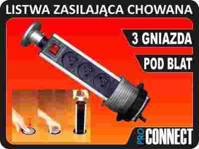 LISTWA ZASILAJĄCA CHOWANA W BLAT 3 GNIAZDA
