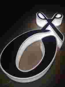 Litery świecą całe łącznie z bokami i w nocy wyglądają jak neon.