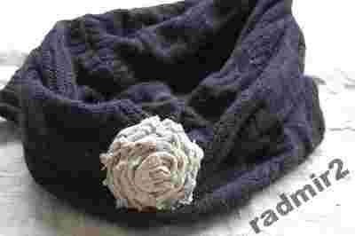 Lniana róża - broszka w formie róży, wykonana z grubego, rustykalnego lnu. Z tyłu przymocowane zapięcie broszkowe.
