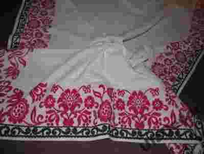 LNIANY OBRUS Z OZDOBNYM JAKBY TKANYM BORDEM