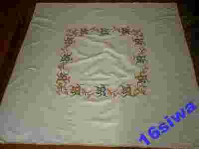 Lniany ręcznie haftowany obrus.
