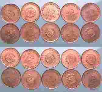LOT - Peru - 20 Centavos 1935 - 10 monet - N