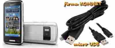 Kabel służy do przesyłania danych, pomiędzy telefonem a komputerem.