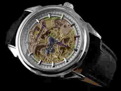 Zamiast tarczy zegarek posiada wyłącznie przeźroczyste szkło, przez które widać cały mechanizm zegarka nazywany "Sceleton" Na samym brzegu zamieszczono indeksy wskazujące wartości godzin oraz minut do odczytu. Wskazówki w kolorze granatowym - jasnym.