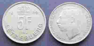 LUKSEMBURG 5 FRANKS 1989 TYP 2
