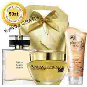W zestawie: Emulsja z bioaktywnym złotem na noc Anew Ultimate 7S, Woda perfumowana Little Black Dress (50 ml), Rewitalizująca maseczka do twarzy (75 ml), Pudełko prezentowe (wymiary rozłożone: 9,5 x 9,5 x 24,5 cm).