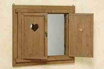Przedmiotem oferty jest pięknie wykonane drewniane lustro z otwieranymi okiennicami. Lustro jest bardzo solidnie wykonane co zapewnia długie użytkowanie. Doda elegancji i stylu każdemu wnętrzu.