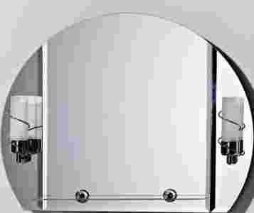 W komplecie z lustrem są dwa chromowane kinkiety z kloszami ze szkła mrożonego które dają naturalne światło, oraz półka wraz z chromowanymi uchwytami.