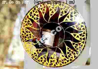 Na konstrukcji z ciężkiego drewna lub grubej płyty naklejone są pocięta na drobno kawałeczki wcześniej od spodu pomalowanego szkła. Łączenia szkiełek uzupelniane są masą w różnych kolorach, czymś w rodzaju fugi. Daje to niesamowity efekt mieniącej sie różnokololowej mozaiki. Jeszcze piekniej te lustra wyglądaja podświetlone punktowo cienką lampką jarzeniową czy ledową. Cały proces zabezpieczony jest chemoutwardzalnym lakierem przed osadzaniem się kurzu oraz penetracji wilgoci, te lustra wiec moga wisięć na zewnątrz mieszkan, altanch czy bardzo wilgotnych lazienkach... Lustra mamy w różnych wielkościach, kształtach i kolorach i teraz na WIELKIEJ, PRZEDŚWIĄTECZNEJ WYPRZEDAŻY za mniej niż POŁOWĘ NORMALNEJ CENY!!!