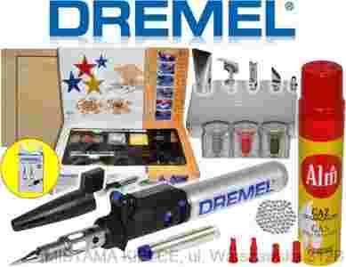 Dremel VersaTip, dodatkowe 2 końcówki 201 DREMEL, GAZ 90ml do uzupełniania zbiornika, końcówka do lutowania, nóż do cięcia na gorąco, nóż do wypalania w drewnie, końcówka do topienia-nadawania kształtów, końcówka do obkurczania, końcówka do usuwania farby, cyna do lutowania, cekiny do mocowania na gorąco, 3 rodzaje proszków do tłoczenia na gorąco, 2 drewniane szablony dekoracyjne, dualny aplikator kleju , gąbka do lutowania + pudełko na gąbkę, metalowa skrzynka do przechowywania , inspirujący plakat z aplikacjami, instrukcję w języku polskim, kartę gwarancyjną oraz dokument zakupu (FAKTURA VAT), bez którego gwarancja jest nieważna !!!
