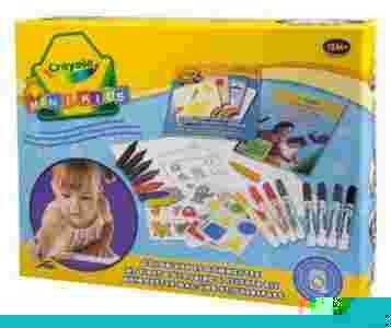 Szukasz czegoś co może zainteresować Twojego maluszka a jednocześnie pozytywnie wpłynąć na jego rozwój? Wypróbuj ten zestaw w pudełku! W jego skład wchodzą kredki i flamastry Crayola, kolorowanka oraz wiele naklejek. Dzięki temu zestawowi Twoje dziecko rozpocznie swoją przygodę z rysowaniem, pozna zwierzątka i nowe kształty. Maluch może ozdabiać kolorowanki (przy każdej z nich jest podpowiedź jakiego koloru powinien użyć), rysować szlaczki, poznawać literki i cyferki.
