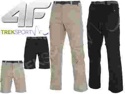 Najwyższej jakości trekkingowe, lekkie spodnie męskie SPMC001 firmy 4F z najnowszej kolekcji Wiosna-Lato 2014, charakteryzująca się świetną jakością wykonania i innowacyjnym designem. Wykonane z materiału 2 Way Strech Rib-Stop (96/4 polamid/elastan) dzięki czemu są wygodne, przewiewne, elastyczne i zapewniają komfort podczas wypraw. Świetnie sprawdzą się na każdym szlaku od wysokogórskich wspinaczek po wędrówki dolinami oraz podczas codziennego użytku. Spodnie posiadają pięć kieszeni. Dwie standardowe boczne oraz dwie tylne, wszystkie zamykane na zamek jak i dodatkową na wysokości kolana – kieszeń cargo zamykaną na rzepy. Dodatkowym atutem spodni są odpinane nogawki, dzieki czemu w prosty i szybki sposób możemy zmienić spodnie w krótkie spodenki do kolan. Dzięki zastosowaniu materiału opartego o siatkę typu rip-stop spodnie są bardziej wytrzymałe i trwałe.