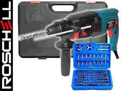Młoto-wiertarka posiada bardzo mocny i wydajny silnik o mocy 800 W oraz dużą regulowaną naciskiem włącznika prędkość obrotową 900 min-1. Młot udarowo obrotowy zapewnia szybkie i precyzyjne wiercenie nie wymagające wysiłku w betonie, cegle, kamieniu, stali, aluminium, drewnie. Ponadto posiada: