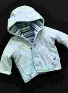 jedna strona - błękitny welur, druga-bawełna w paseczki