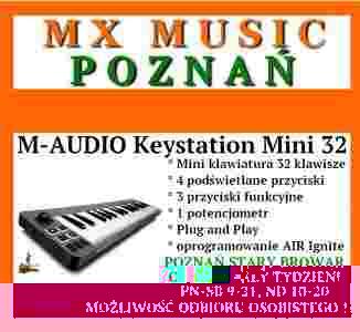 M-Audio® Keystation Mini 32 to idealny wybór dla podróżujących muzyków. Ultra przenośna klawiatura, zaprojektowana przez firmę, która zapoczątkowała mobilną produkcję muzyczną, oferuje niezrównaną grywalność w swojej klasie. Po prostu podłącz ją do komputera lub iPada i graj partie na dwie ręce na 32 niskoprofilowych mini-klawiszach, dających świetne poczucie gry. Dostosuj czułość klawiatury do Twojego stylu gry, ze świetnie funkcjonującymi krzywymi dynamiki—w tym jedną przeznaczoną specjalnie do programowania perkusji. Steruj Twoim występem przy pomocy czterech przypisywalnych kontrolerów, w tym pokrętła. I z łatwością graj i twórz muzykę, używając dołączonego oprogramowania. Z zasilaniem przez USB i funkcją plug-and-play, Keystation Mini 32 stanowi łatwy sposób na tworzenie i wykonywanie muzyki, jeśli jesteś w ciągłym ruchu.