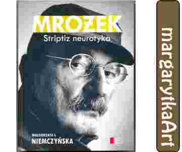 Striptiz neurotyka Małgorzaty I. Niemczyńskiej, pierwsza wydana po śmierci Sławomira Mrożka poświęcona mu książka biograficzna, to błyskotliwie napisany i świetnie udokumentowany atlas konstelacji, w której autor Policji, Krawca czy Rzeźni zajmuje miejsce centralne, a wokół niego krąży mnóstwo innych planet, księżyców i gwiazd. Są wśród nich m.in.: Witold Gombrowicz, Stanisław Lem, Jan Błoński, Adam Włodek są kobiety malarka Maria Obremba i Meksykanka Susana Osorio Rosas, jest też Beata Mikołajko, terapeutka, która pomagała Mrożkowi wyjść z afazji. Autorka opisuje również mniej znane epizody z biografii Mrożka, m.in. jego przygody z kinem, a także zawartość IPN-owskiej teczki pisarza.