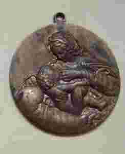Mała mosiężna plakietka z Matką Boską Karmiącą