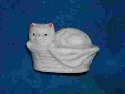 Mała porcelanowa figurka - kotek w koszyczku