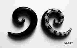 Przedmiotem sprzedaży jest mały rozpychacz - spirala koloru czarnego w białe czaszki. Spirala jest wykonana z akrylu. Grubość spirali 3mm, wysokość 15mm, szerokość 11mm. Spiralki są dwustronne. Jedna strona ma wzorki, druga zaś jest tylko czarna.