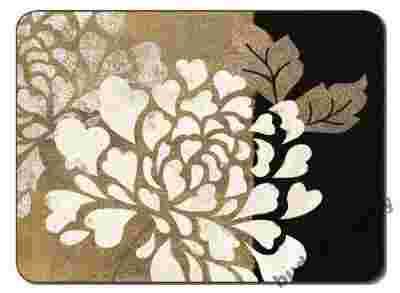 Komplet eleganckich, bardzo dobrej jakości podkładek korkowych nowozelandzkiej firmy JASON, w brązowo-złotej tonacji kolorystycznej, ze stylizowanym motywem kwiatu.