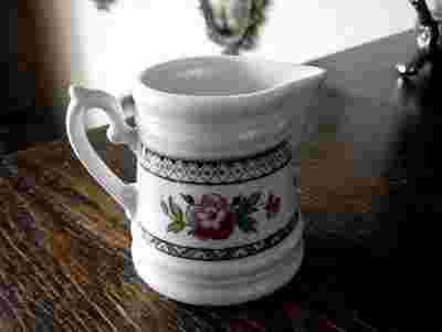 BIAŁA PORCELANKA, CZARNE SZLACZKI, RĘCZNIE MALOWANY,