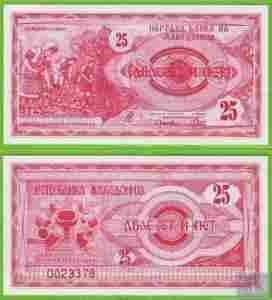 MACEDONIA 25 Denari 1992 P2a UNC